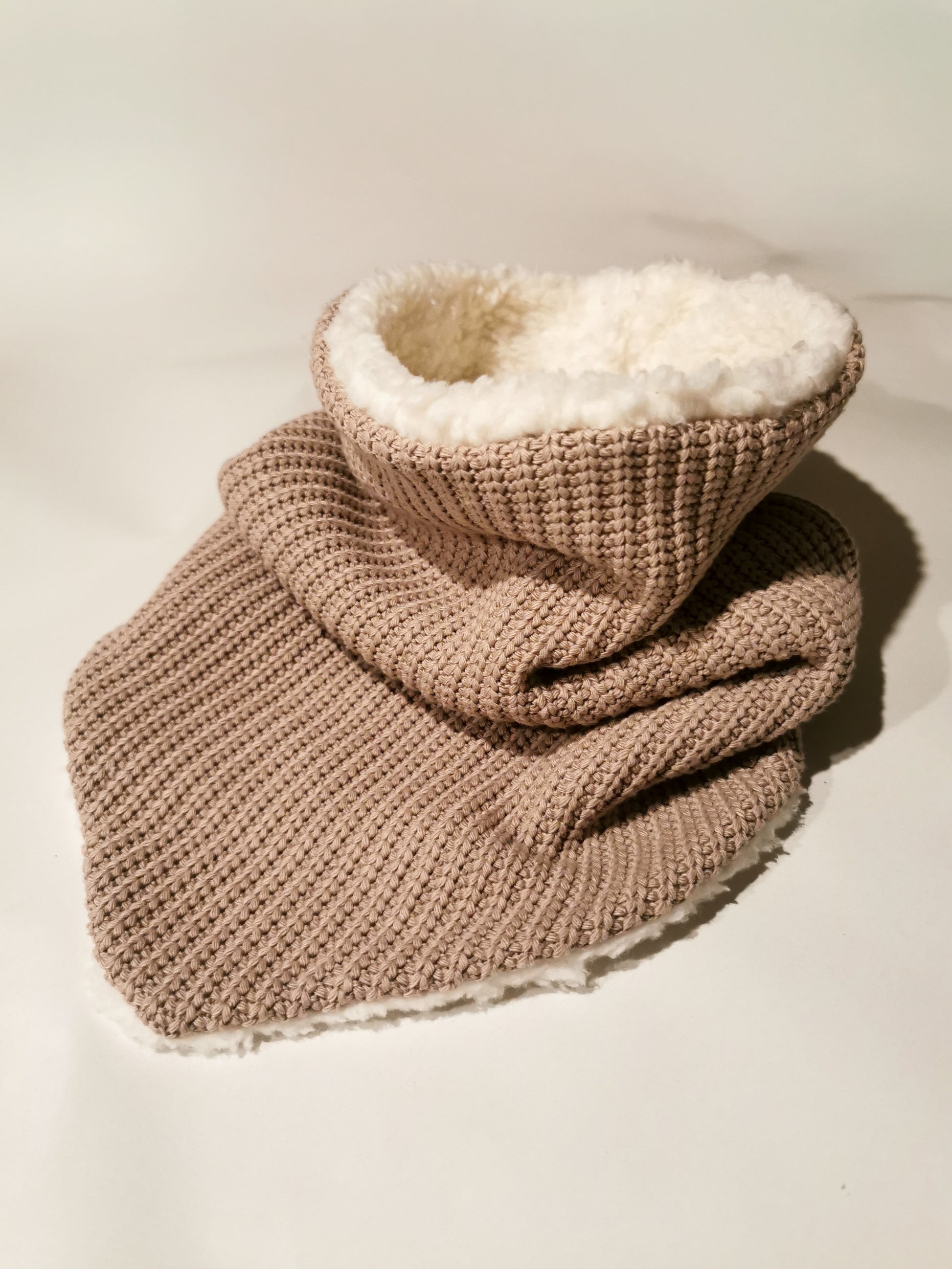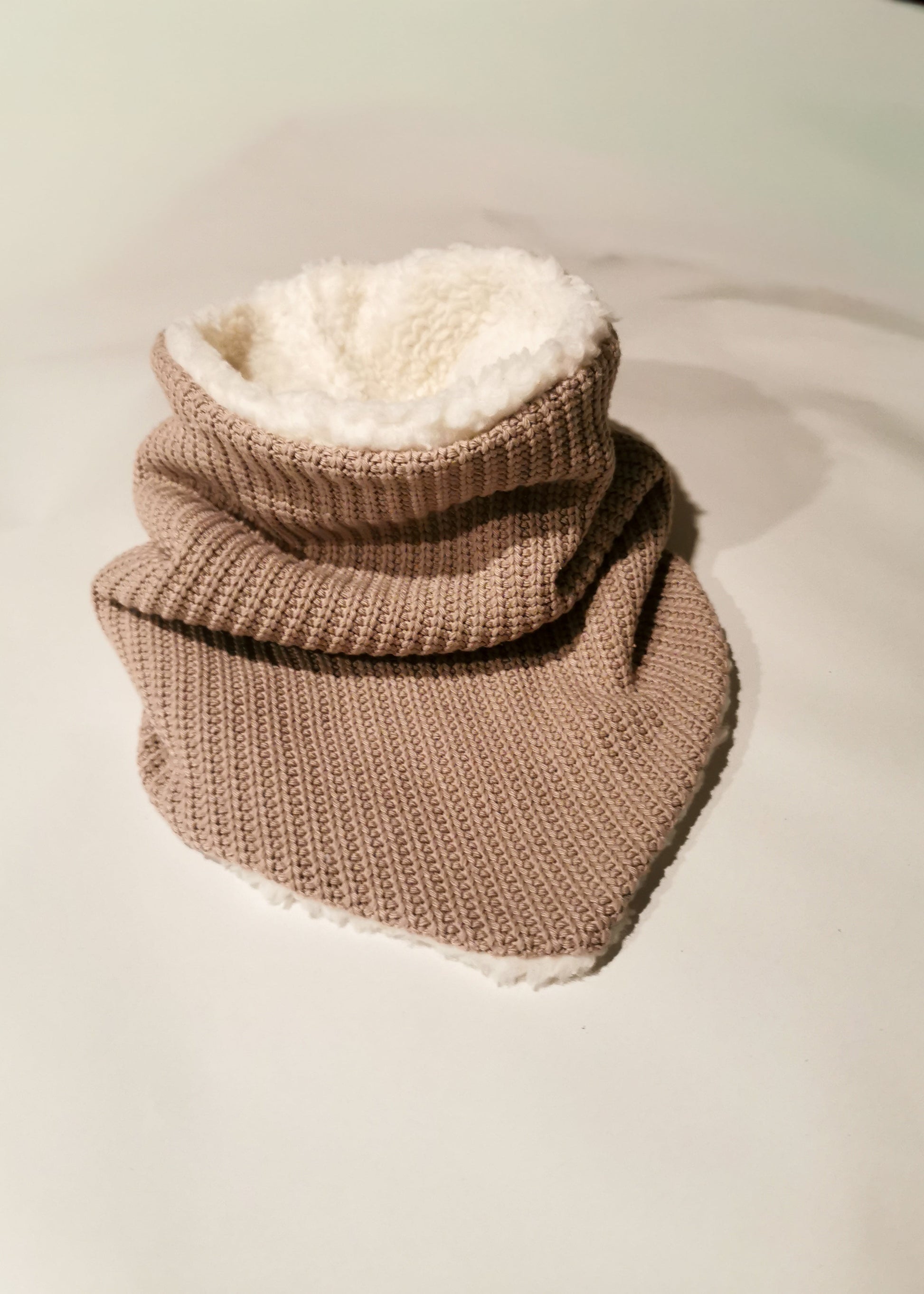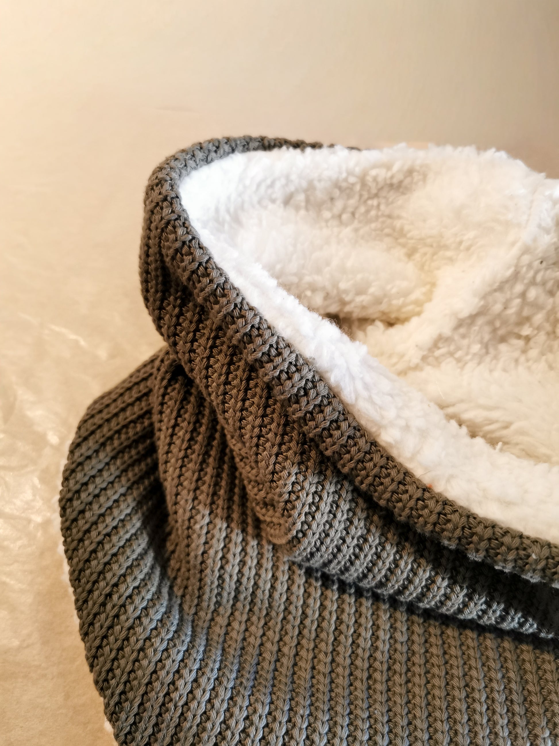 Der Grobstrick Dreiecks-Loopschal, außen grober Strick und innen super weicher Teddyplüsch, die Kombination aus lässigen Style und Geborgenheit, perfekt für die kalten Wintertage.